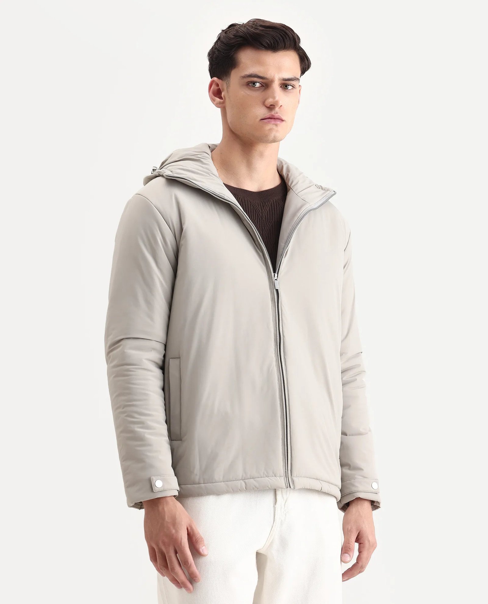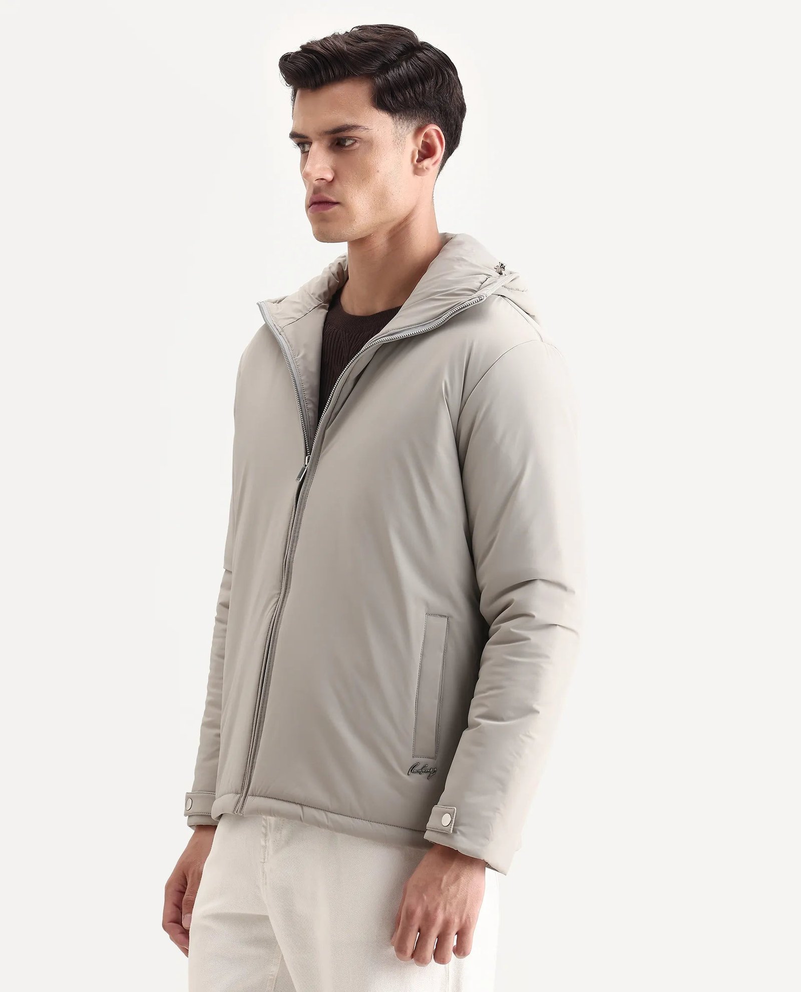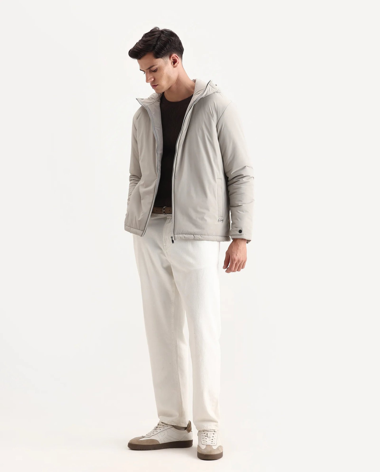 Rare Rabbit Men’s Kost jacket features a high neck and a relaxed fit for comfortable layering. Its plain design ensures versatile styling. making it ideal for casual and semi-formal occasions. Lightweight yet resilient. this jacket offers protection against mild weather while maintaining a sleek. understated look.